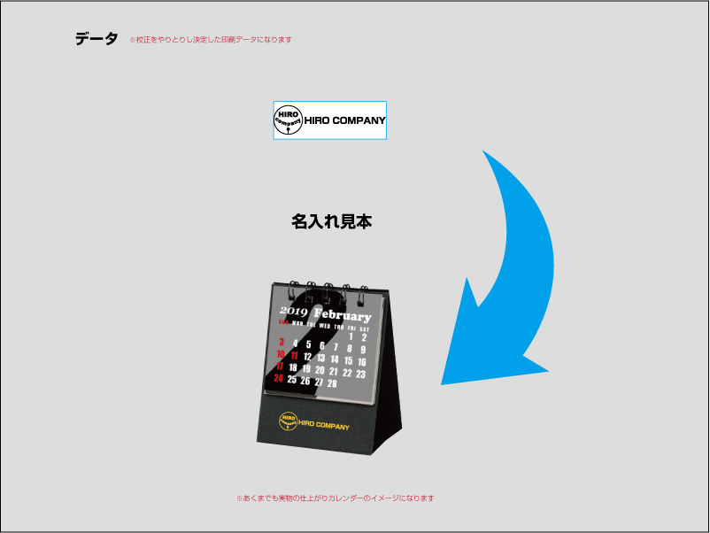制作見本 >> 既成柄卓上カレンダー名入れ見本